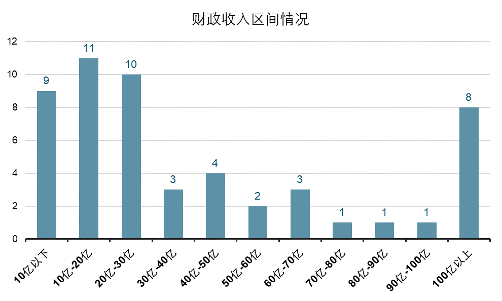 由于參與項(xiàng)目的供應(yīng)商太少而不得不選擇單一來(lái)源采購(gòu)模式的地區(qū)集中度較高,可以看出選擇單一來(lái)源采購(gòu)與項(xiàng)目的地區(qū)有一定的關(guān)系,將地區(qū)以財(cái)政收入進(jìn)行區(qū)間劃分后可以看出,被動(dòng)選擇單一來(lái)源采購(gòu)模式的地區(qū)主要是財(cái)政收入在30億以下的區(qū)縣級(jí)地區(qū),而財(cái)政收入在100億以上地區(qū)的項(xiàng)目主要為市本級(jí)或省本級(jí)的項(xiàng)目,這些項(xiàng)目或由于規(guī)模較大使得參與投標(biāo)的供應(yīng)商太少,具體情況如圖6所示。