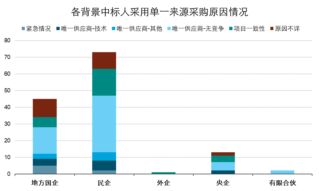 圖12 不同背景中標(biāo)人采用單一來(lái)源采購(gòu)原因情況