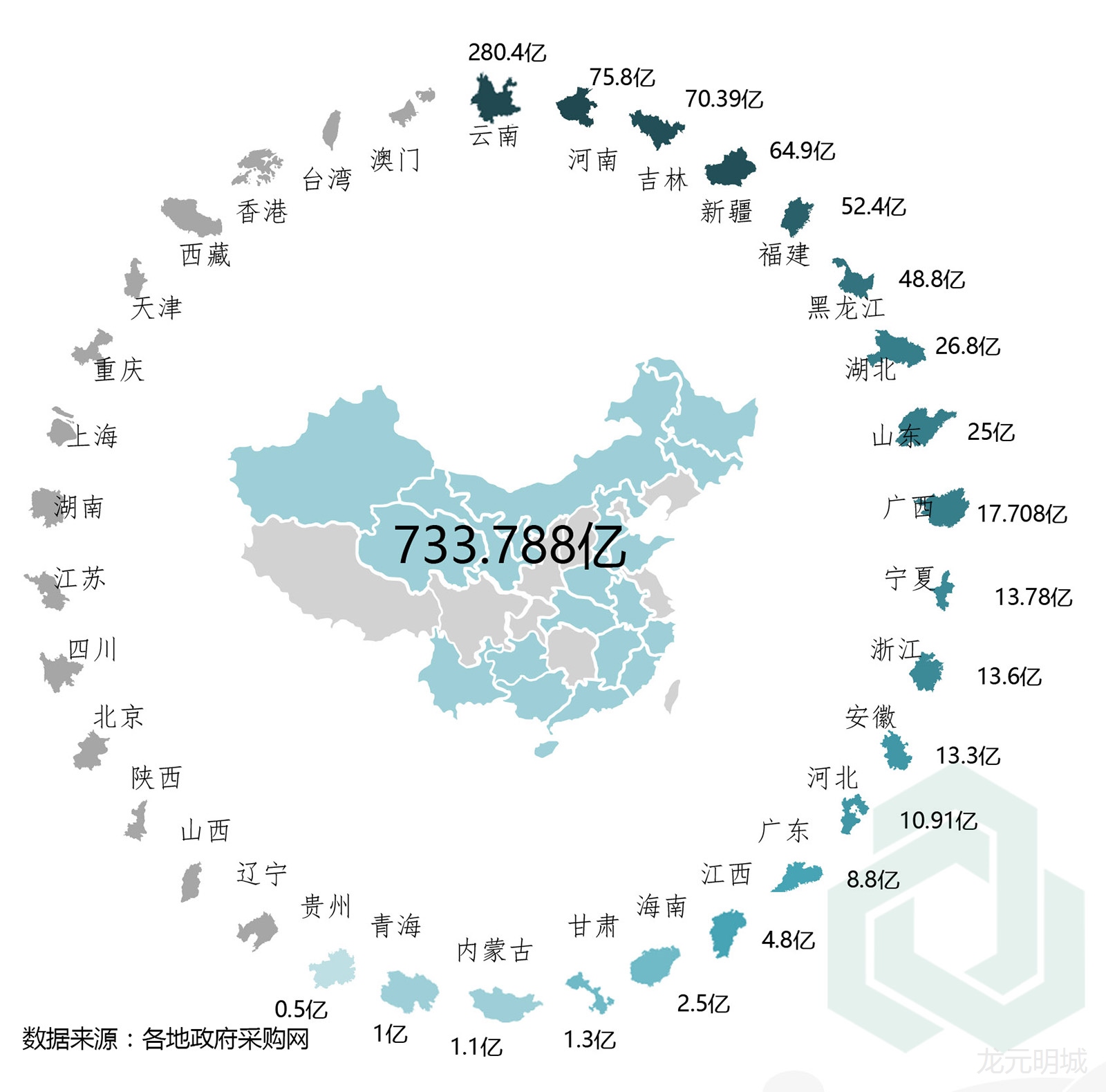 (數(shù)據(jù)來(lái)源:各地政府采購(gòu)網(wǎng)、各上市公司公告)