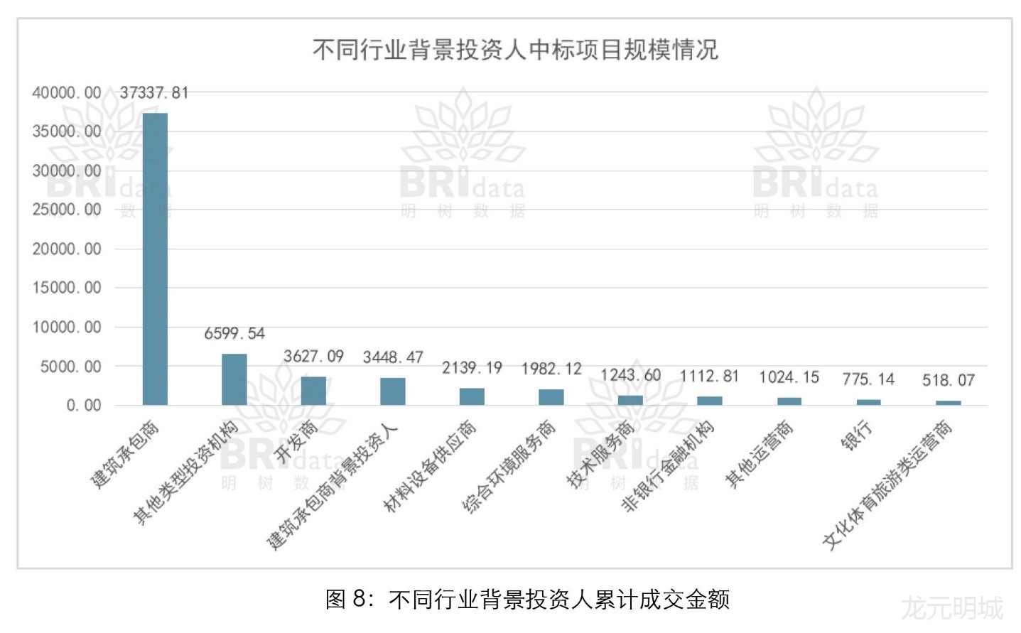 我們將社會(huì)資本按照行業(yè)背景進(jìn)行了分類(lèi),其中標(biāo)金額和中標(biāo)個(gè)數(shù)數(shù)據(jù)分別如下: