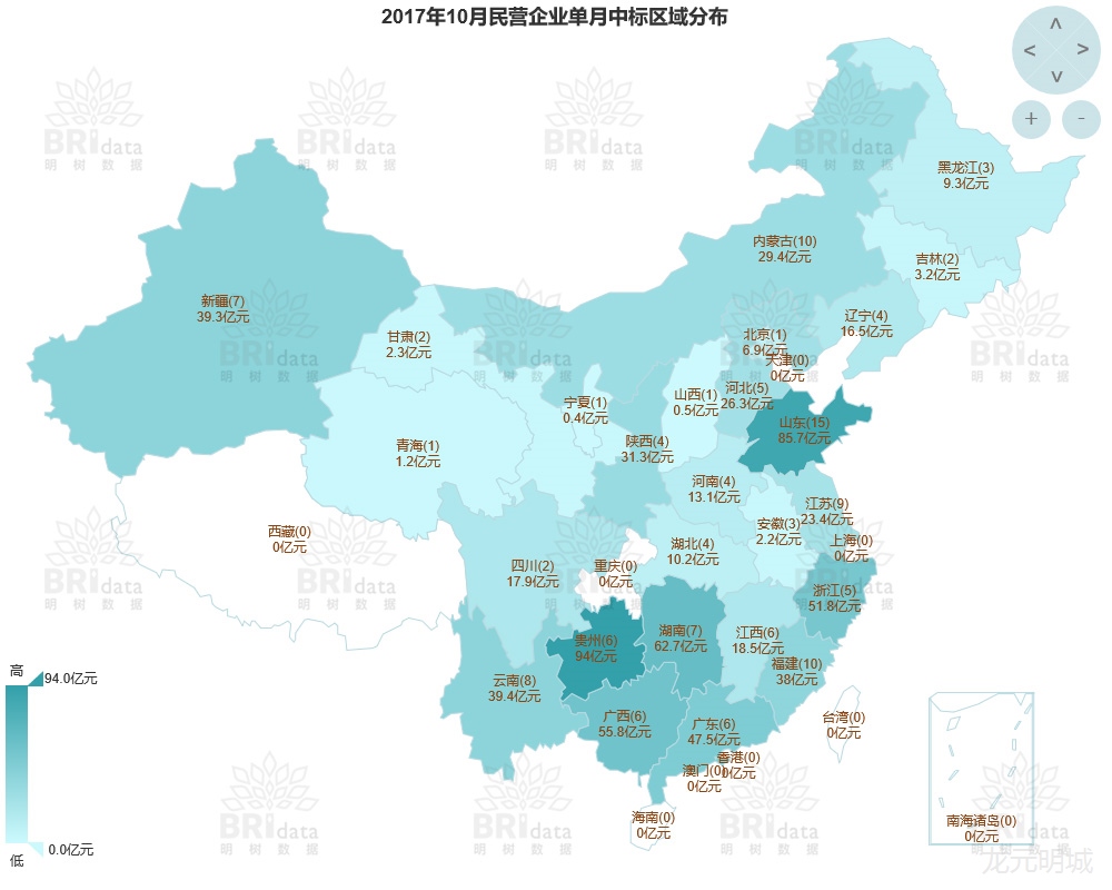 圖12:民營企業(yè)單月中標(biāo)區(qū)域分布