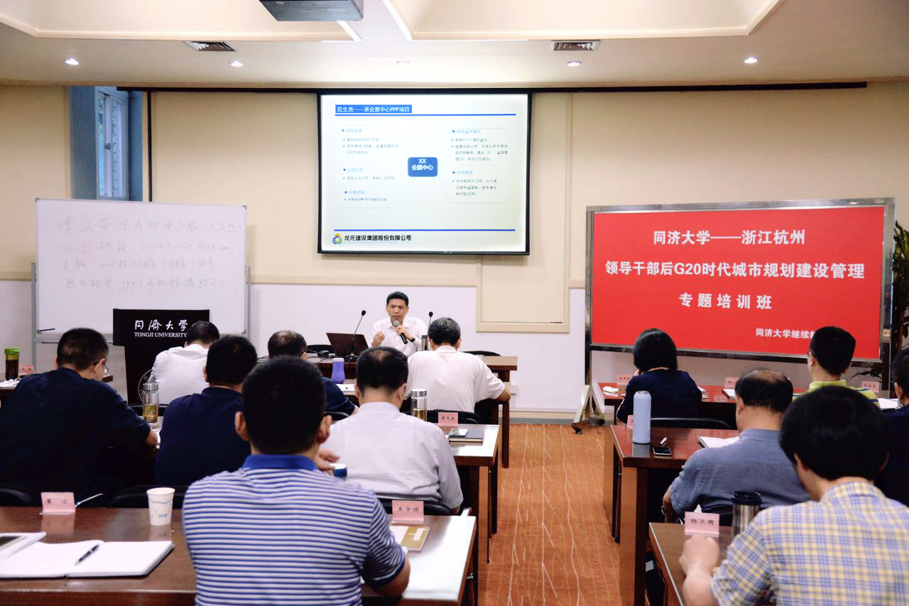 2016年9月28日上午,浙江杭州領(lǐng)導(dǎo)干部組成的后G20時(shí)代城市規(guī)劃建設(shè)管理專題培訓(xùn)班在同濟(jì)大學(xué)繼續(xù)教育學(xué)院正式開課,龍?jiān)ㄔO(shè)集團(tuán)副總裁、龍?jiān)鞒强偨?jīng)理顏立群為來自浙江杭州的領(lǐng)導(dǎo)干部授課。